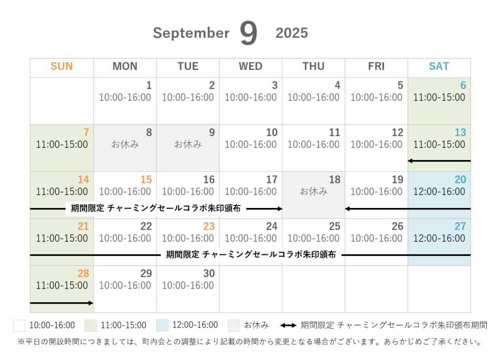 2025年9月 授与所開設時間のお知らせ